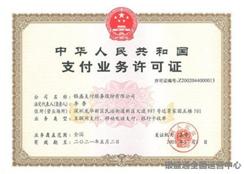 深圳銀盛電子支付科技有限公司是首批獲得中國人民銀行頒發的《支付業務許可證》的第三方支付企業之一(簡稱銀盛支付)并在2016年成功續展支付牌照。銀盛支付是“深圳知名品牌”,憑借其在創新服務、積極承擔企業社會責任等方面的卓越表現,上榜“2019年銀行卡收單機構十強”,并斬獲2018年“支付可持續發展先鋒機構”、“2018粵港澳大灣區十大卓越創新力企業”、“深善愛心企業”等多項榮譽。